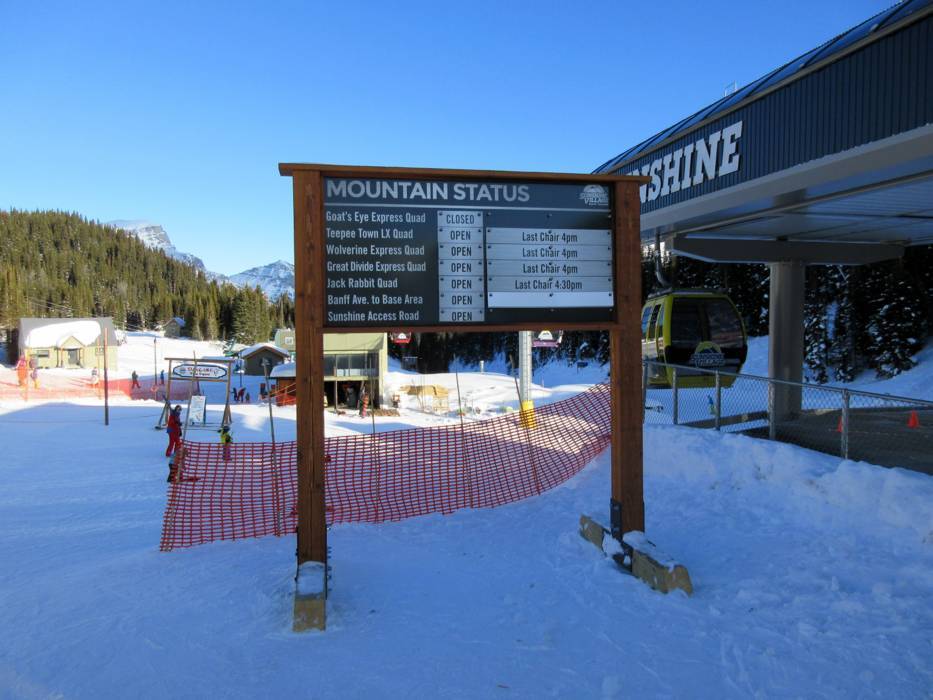 | Nota: Gli orari d'esercizio sono indicazioni generali fornite dal comprensorio sciistico Sunshine Village e possono variare in funzione di circostanze particolari, giorni settimanali, vacanze scolastiche e festività. | |