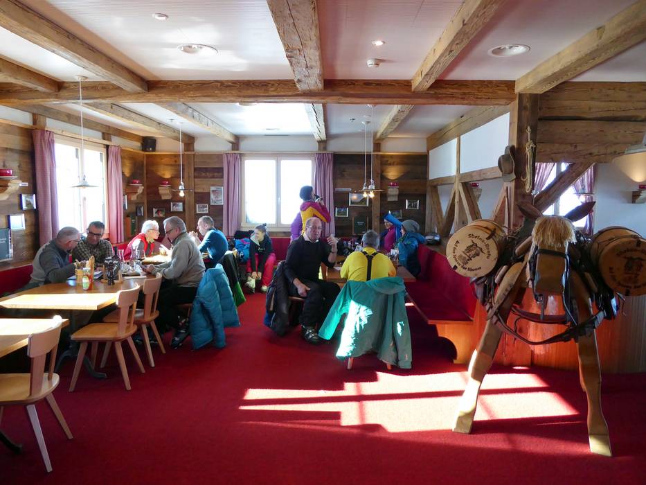 Il Bärghuis Jochpass offre accoglienti e tradizionali stube con servizio al tavolo. Oltre a una grande terrazza soleggiata, c'è anche il Gadä con snack e bevande.