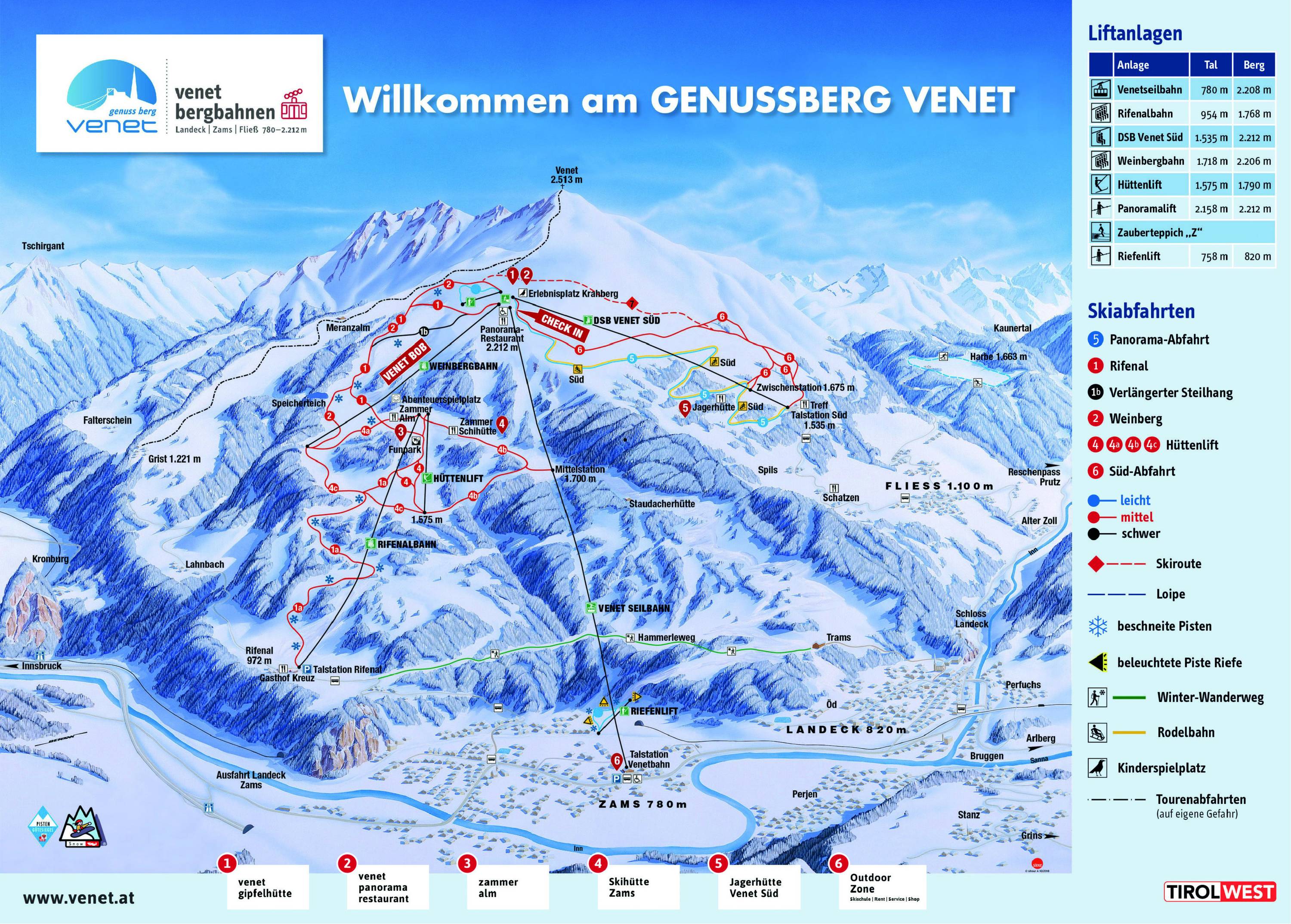 Mappa delle piste Venet – Landeck/Zams/Fliess Stagione 2019/2020