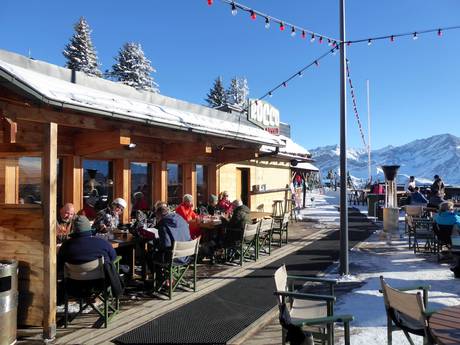 In tutta l'area sciistica si trovano accoglienti e ottimi punti di ristoro. Quando il tempo è bello, le terrazze soleggiate invitano a una sosta e vengono servite principalmente specialità svizzere.