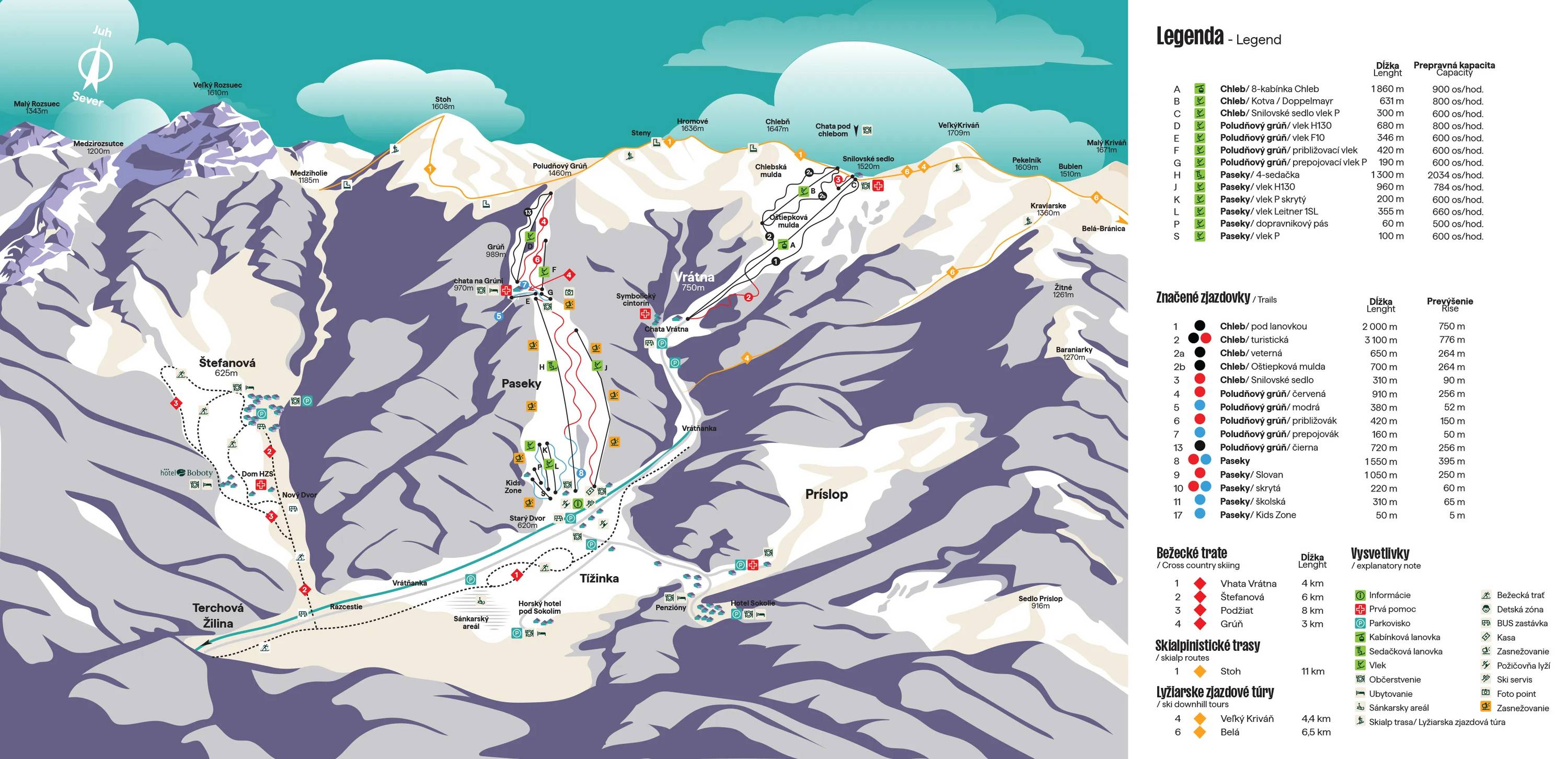 Mappa delle piste Vrátna Stagione 2025/2026