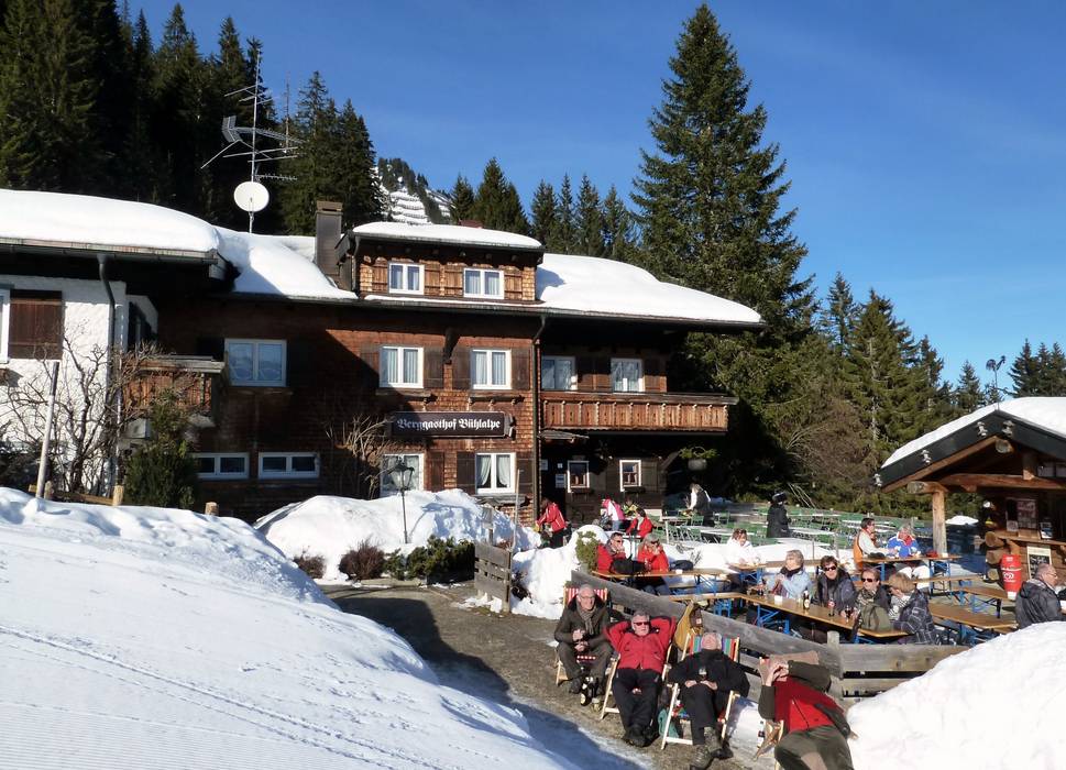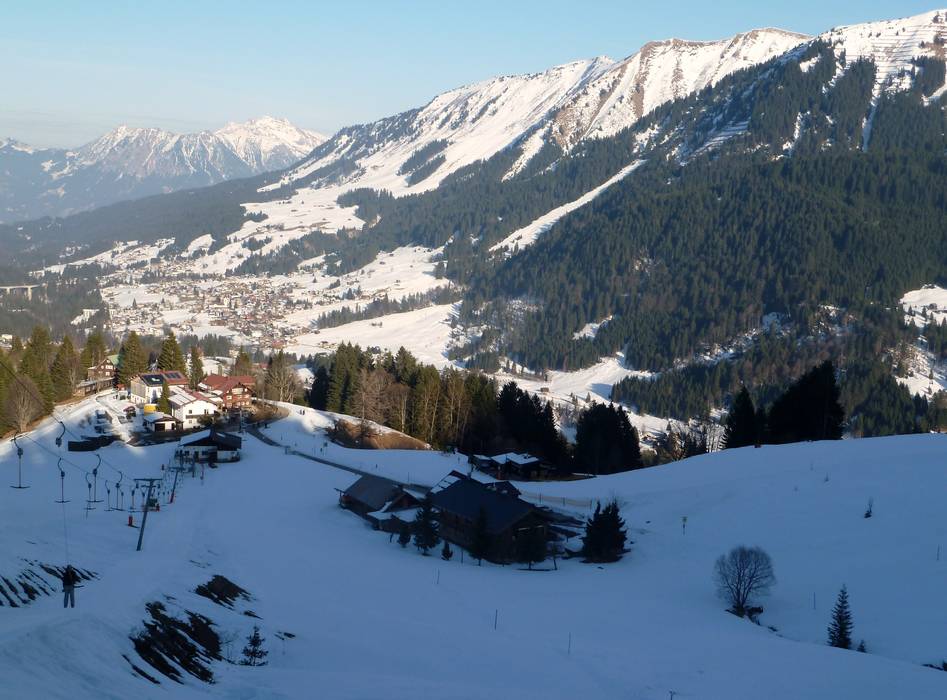 Gli impianti di risalita e le piste al Walmendingerhorn e Heuberg collegano i pendii a sinistra della Breitach formando un comprensorio sciistico. Grazie all’esposizione a sud e a est, l’area sciistica sopra Mittelberg e Hirschegg è baciata dal sole. Al Walmendingerhorn l’atmosfera è