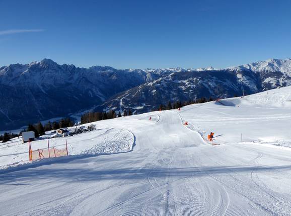 La facile pista per famiglie conduce dalla stazione a monte Steinermandl fino alla stazione a monte della cabinovia Zettersfeld.