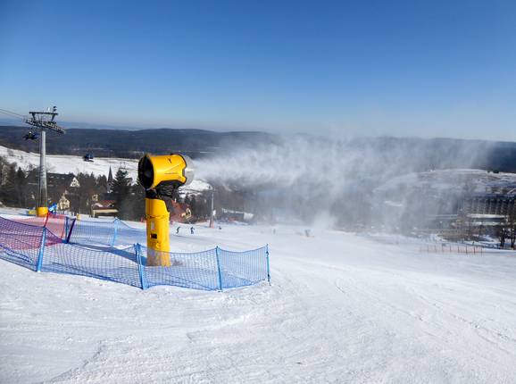 La garanzia di neve a Zieleniec è particolarmente elevata per una zona di media montagna, grazie alle frequenti correnti d’aria fredda e all’altitudine del comprensorio sciistico che supera i 1000 metri. Inoltre, l’innevamento artificiale con moderni cannoni da neve e una produzione di neve in gran parte indipendente dalle condizioni meteorologiche è stato portato a un livello molto alto.