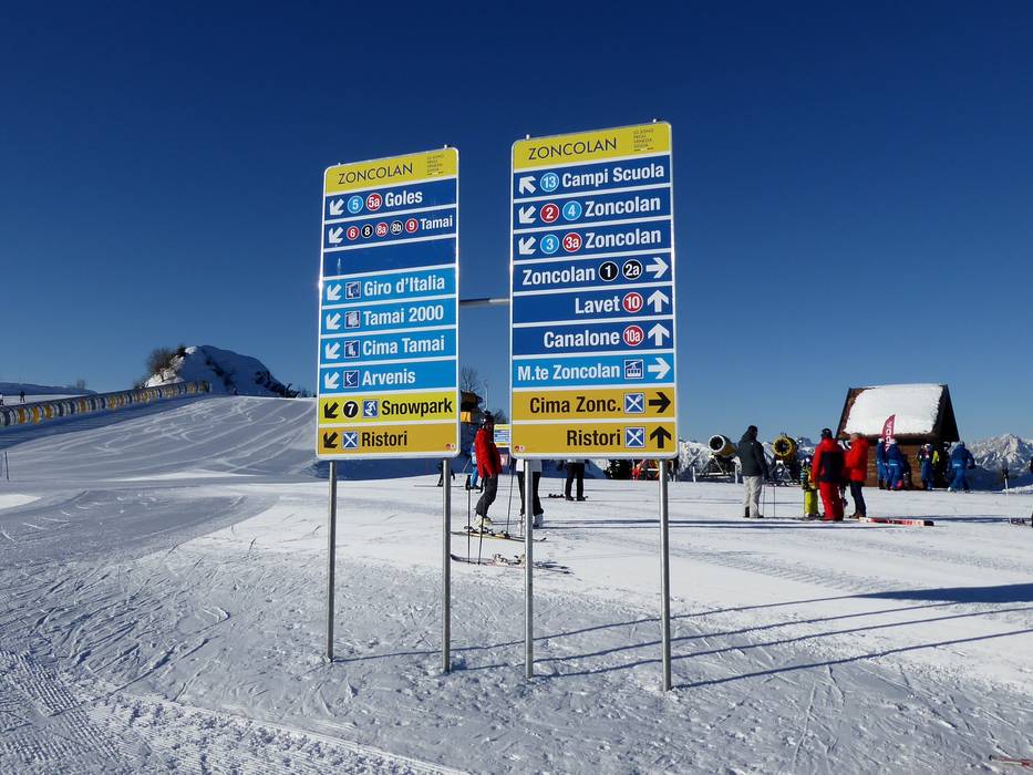 Orientamento (Mappa delle piste, Pannelli informativi, Segnaletica) e sicurezza nel comprensorio sciistico Zoncolan - Ravascletto/Sutrio