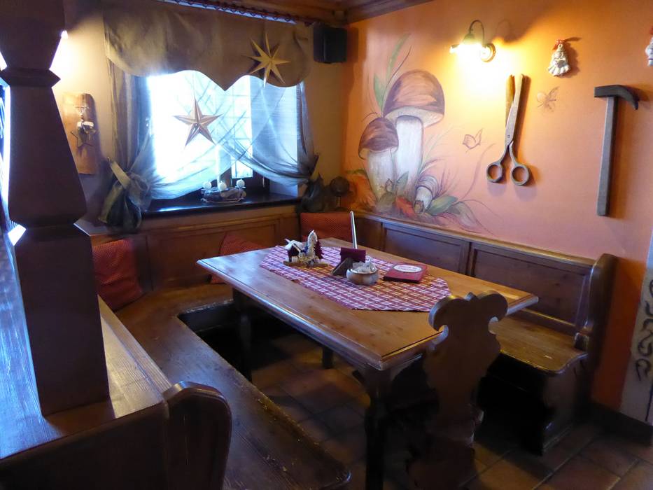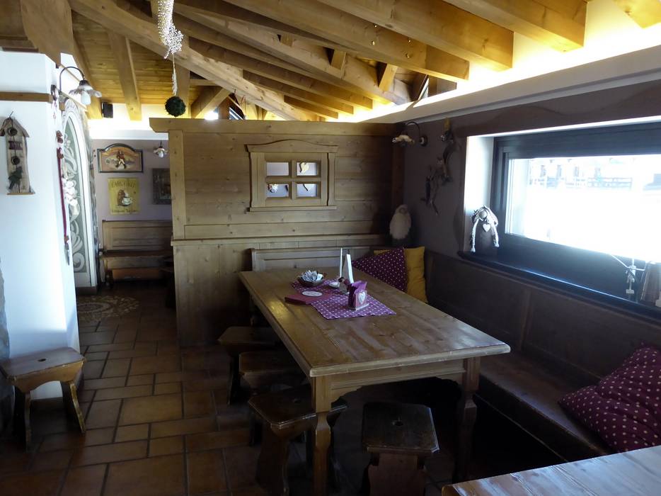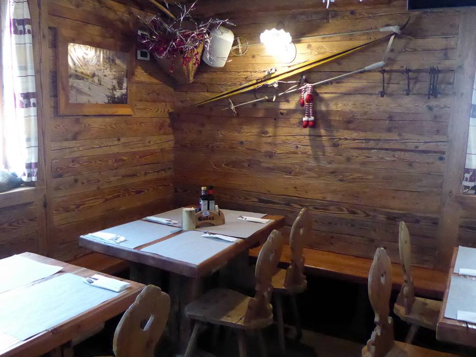 La bellissima baita è costruita in pietra e legno. Vengono serviti piatti carnici e italiani.