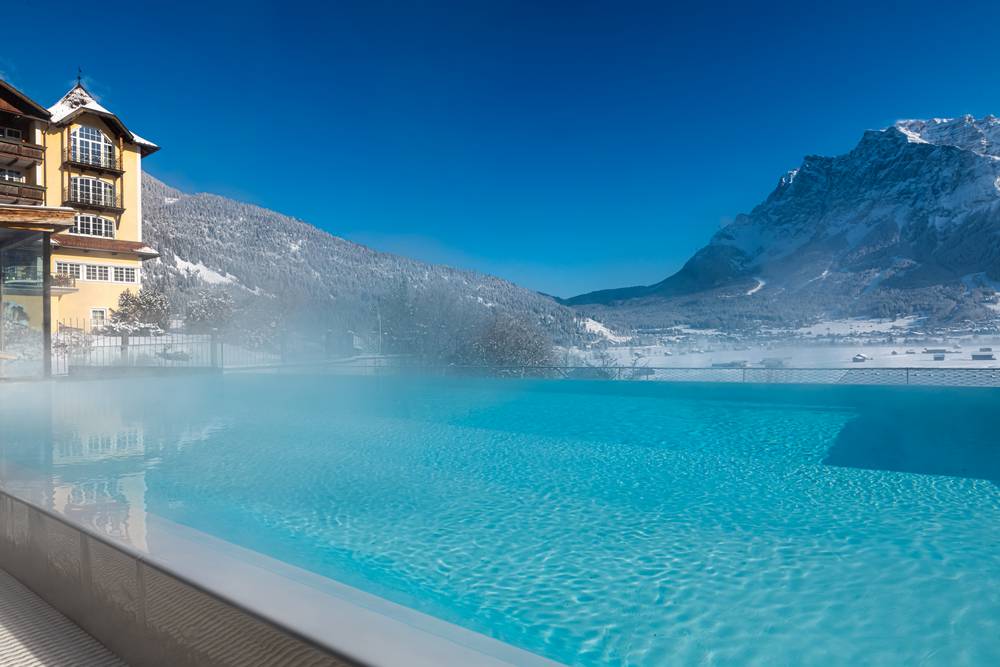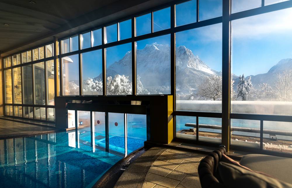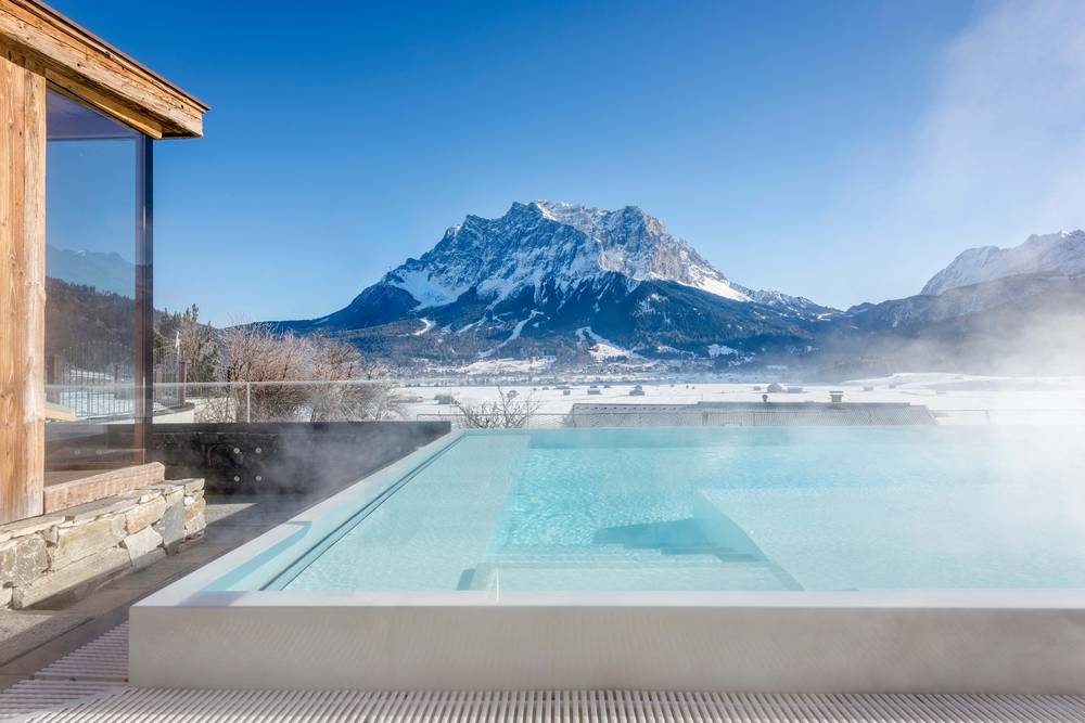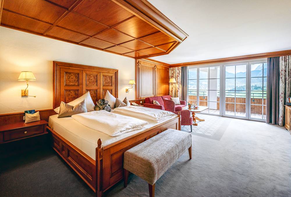 Le suite offrono ogni comfort immaginabile. Grazie alla posizione libera dell’hotel, potrete godere di un posto in prima fila con vista sulla Zugspitze.