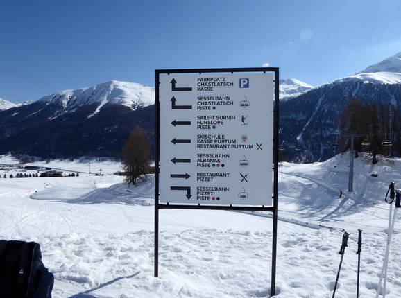 Orientamento (Mappa delle piste, Pannelli informativi, Segnaletica) e sicurezza nel comprensorio sciistico Zuoz - Pizzet/Albanas