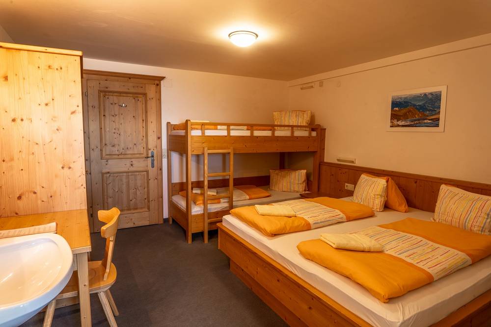 Nella Krefelder Hütte vi aspettano circa 40 posti letto in accoglienti camere da 2 a 5 letti. Per il vostro benessere culinario ci occupiamo noi con la nostra deliziosa mezza pensione in rifugio: comprende una ricca colazione a buffet per iniziare al meglio la giornata di vacanza e una gustosa cena di tre portate la sera.