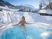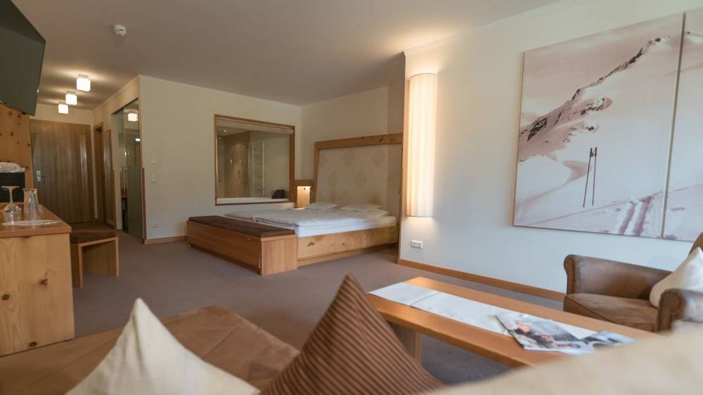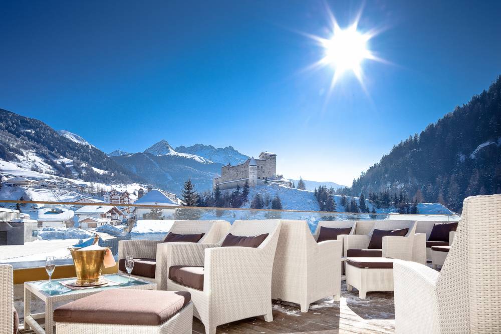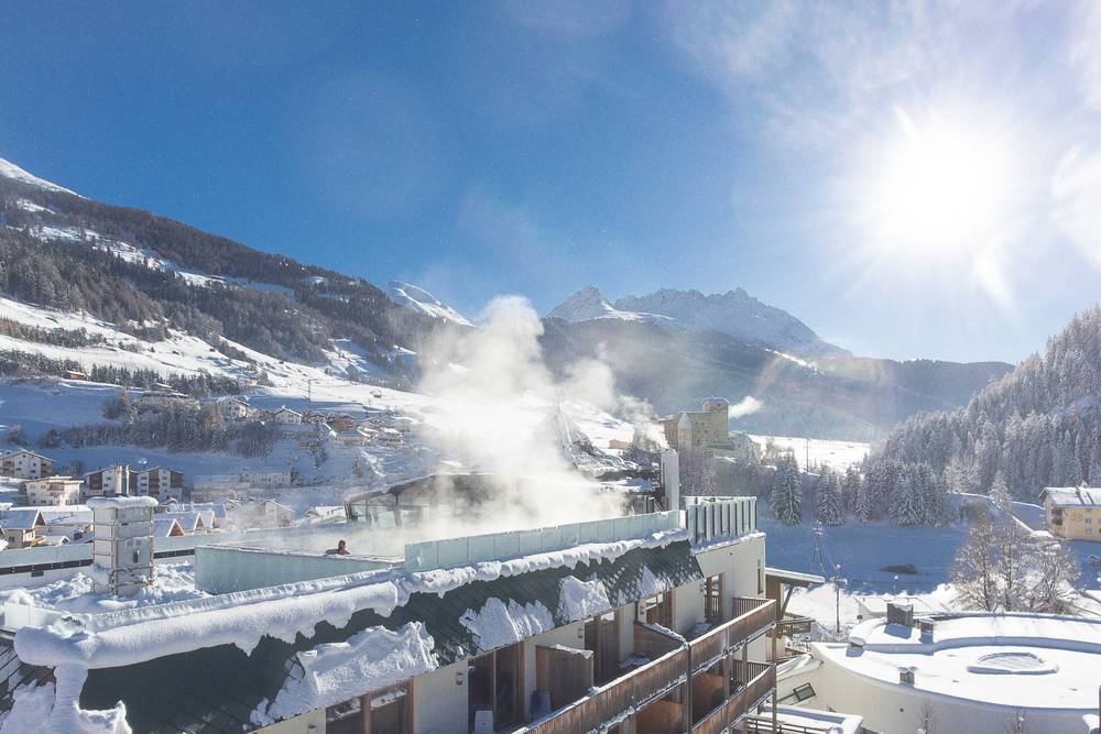 Il Wellness & Spa di 4.500 m² non lascia nulla a desiderare. Il punto forte è la Sky Pool riscaldata sul tetto con vista panoramica a 360° sulle montagne al confine tra tre paesi. Una vasca idromassaggio all’aperto con vista sul castello di Naudersberg permette di rilassarsi completamente. Nell’area Wellness-Spa per adulti si trova un’altra vasca idromassaggio, aree relax con lounge relax e letti ad acqua in tutte le direzioni. Sono disponibili circa 10 diverse saune e bagni di vapore, inclusa una sauna a blocchi. Inoltre, c’è anche il Family-Spa con piscina coperta di design, saune e bagno di vapore. Ideale per tutta la famiglia.