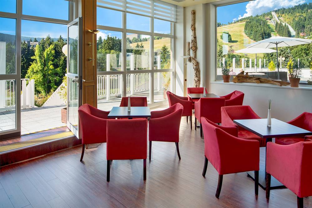 Rilassatevi nell’ampia area benessere, dotata di due saune esterne, strutture per massaggi, una sala relax con camino e vista panoramica, oltre a corsi di yoga e pilates. Il ristorante Silhouette serve specialità regionali e internazionali e la terrazza del caffè vi offre la possibilità di gustare caffè e torte. Trascorrete la serata al Piano Bar con la sua pittoresca lounge e godetevi la vista panoramica.